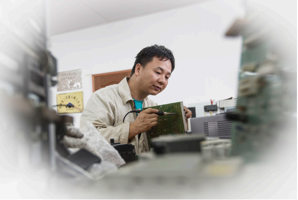 蔡宏波自 1991 年工作以来,一直从事维修电工工作,活跃在生产一线。 他如饥似渴地学习,刻苦钻研各类专业技术,敢于拿起“手术刀”对未知的 领域进行解剖、分析、总结、破解。