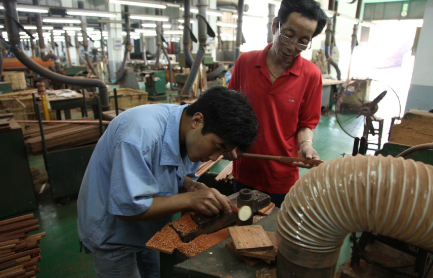 张建平的父亲张龙祥是乐器制作的老艺人,业界出名的工艺师。1979 年7 月, 张建平告别农场来到工厂,成为上海民族乐器一厂的工人,开始向父亲学艺。