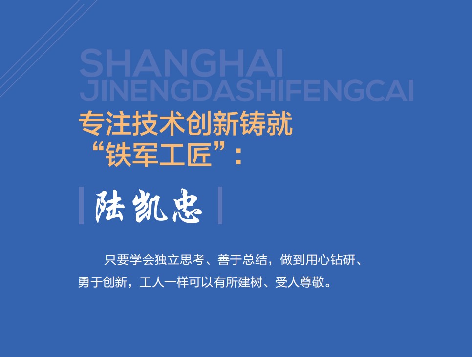 陆凯忠,1972 年生,1991 年进入上海市基础工程集团有限公司(简称“基础集团”)工作,大专学历,高级技师,中共党员,现任基础集团电工组长、劳模创新工作室负责人。