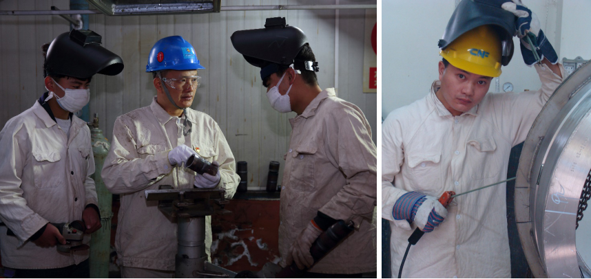 核电建设的部分焊接设备是从法国、美国等引进的,在具体操作过程中, 会出现工艺不适用等各种各样不足的地方,面对满是英文的焊接设备和各国 的培训专家,罗开峰没有胆怯,主动与专家进行技术讨论,根据我国的焊接 材质等实际情况进行升级改造,连美国等外国专家都对罗开峰竖起大拇指。