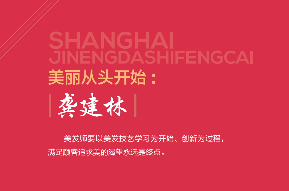 随着时间的推移,龚建林从小青年变成了中年,现在他是 南京美发公司的技术总监,也有一个以他名字命名的技能大师 工作室。龚建林做了 30 余年女士发型,对上海女性的发型很 有发言权。