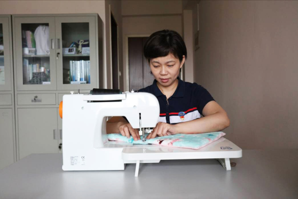 护理员在帮助偏瘫老人康复锻炼中碰到引导抬腿的难题,黄琴又有“巧 思”,她想到用鞋套加装两根长带子的方法,制作了“偏瘫老人助步鞋”, 为老人康复锻炼提供了基础保障,也大大提升了护理安全系数。