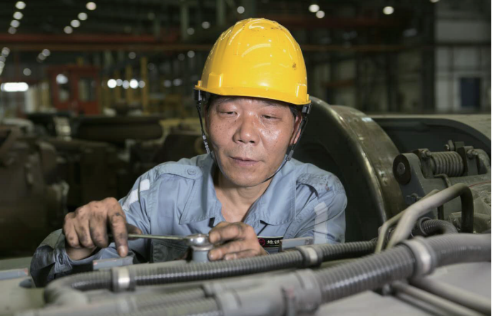 说起制动,还有两个小故事。先说列车空压机吧 , 列车空压机好比人的肺,出不得问题。列车在夏季运行中,空压机处于 200℃以上的高温状态,空压机的甩油片经常脱落,会造成空压机损坏。经过研究,我带领团队找出了甩油片脱落的原因,就用两根金属圆柱的弹性销,为甩油片“插上一道安全门栓”。这一创新的“永久固定技术”,实现了列车运营中 78 台空压机报废率为零的纪录,外方供应商也对这项创新工艺表示认可,并被他们写入了此后的制造工艺中。