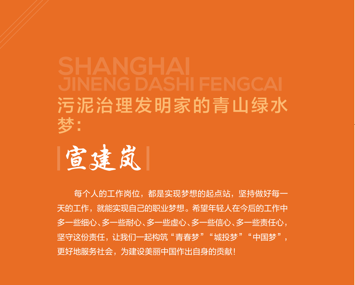 他就是上海城投污水处理有限公司石洞口污水处理厂技术总监、污泥干 化焚烧车间主任宣建岚。“出淤泥而不染,中通外直,香远益清”的映日荷花, 也许就是他的人生写照,这里有他朝思暮想的青山绿水梦。