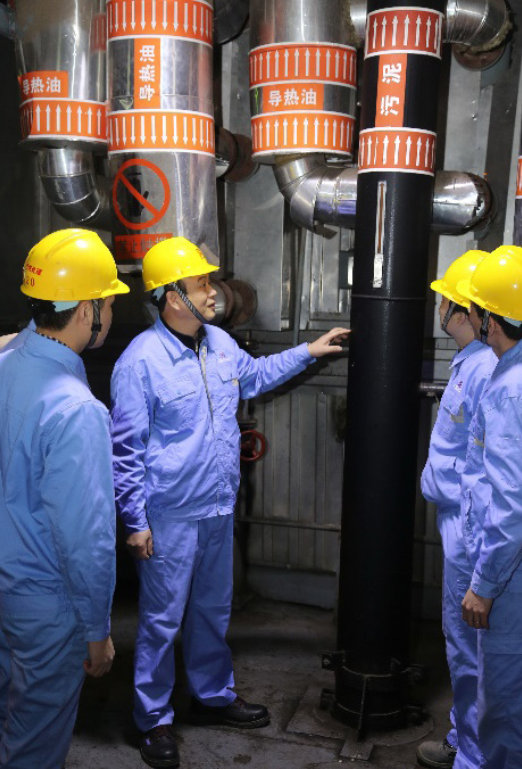 为了解决干化换热器更换的难题,宣建岚和同事们向德方公司提出了优化建议:更换导热 油管的材质和厚度,提高耐磨性;内置换热器由纵向两组布置改为左、中、右三组抽屉式布置, 根据换热器磨损情况实现左右置换和180°翻身安置。建议均被采纳,使维修变得简单,而且使用 寿命比之前提高了40%。