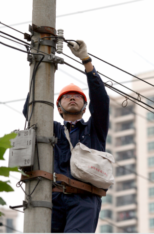 仲夏时节,上海近 40℃的高温让不少市民选择宅在室内 消暑纳凉,而中国电信上海公司西区局的基层线务员徐珺却还 奔波在上海的大街小巷,上门为用户修理宽带光缆等电信技术 领域的疑难杂症。四个工具包、几卷网线光缆,加起来负重 30 公斤的全套装备让徐珺每走几步路就大汗淋漓,汗水浸湿贴身 的白半袖,把外面的长袖工装也打得很湿。