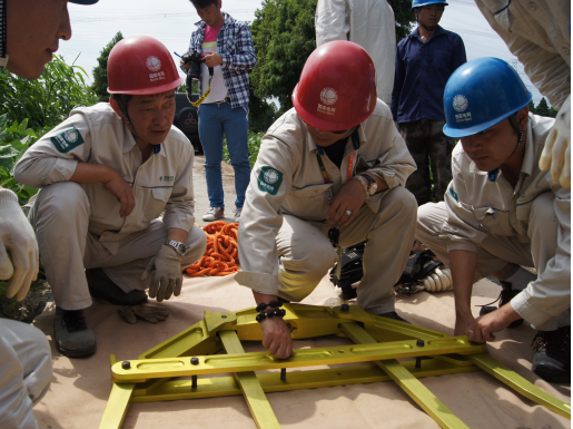 然而工 程一开始,团 队就遇到了难 题。由于该新 型导线的曲率 半径极小,且 陶瓷芯为脆性 材质,因此在 展放过程中导 线不能过 30° 转角塔滑轮,这样整条线路的 7 个耐张段施工,预计需要停电 50 天,而且当时我国在工器具和施工工艺上也完全是一片空白。 “No ! No,不可能!”3M 督导 Tom 在查勘过施工现场后一 个劲儿地摇头:“你们这是在开玩笑,16 公里,我们公司提供 的工器具不够,按中国目前的机械自动化程度,加上那么复杂 的施工环境,至少需要 90 天左右的施工时间!”